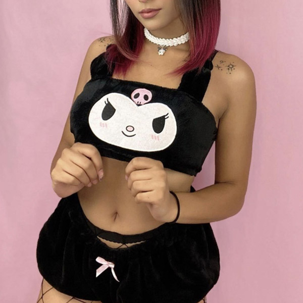 Wow,you can look lively and girlish with the help of this two-piece set. Consists of a bandeau top and a shorts,designed with cartoon pattern and soft fabric,this two-piece set knows how to give you a cozy yet playful style.