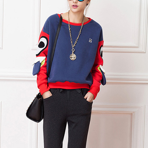 cartoon pattern,long sleeve and round neck design. Easy to match.