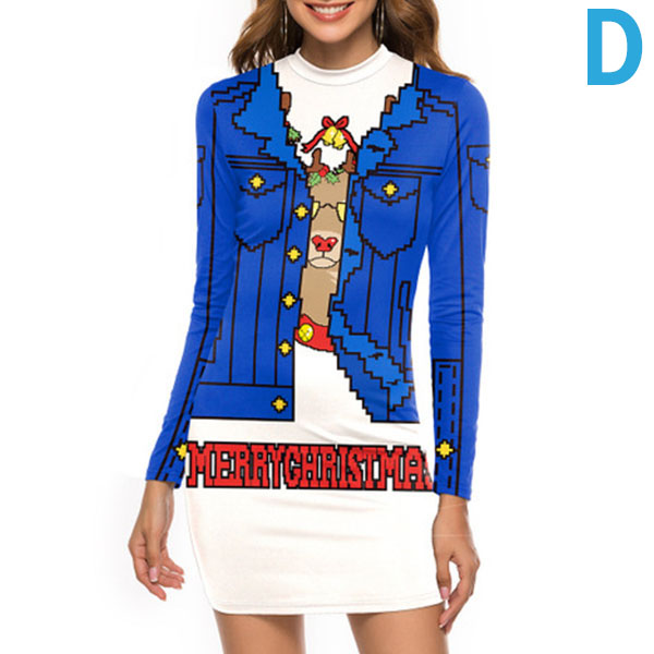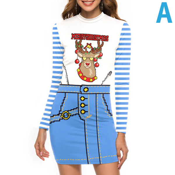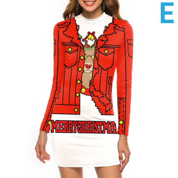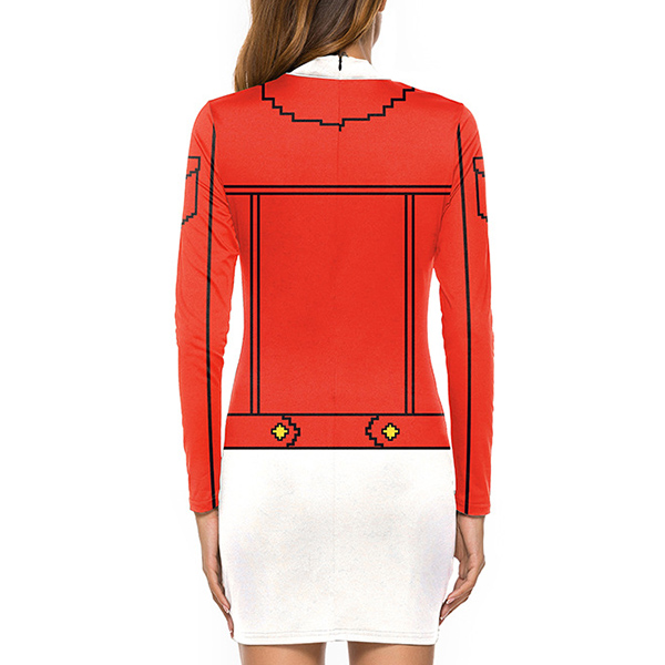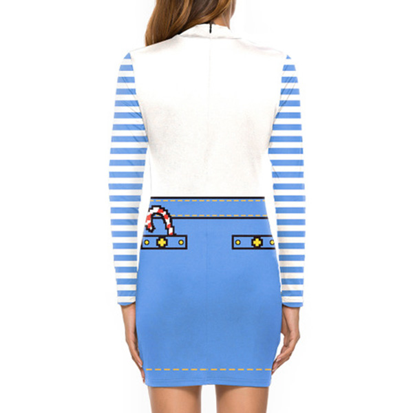 Cute Cartoon Printed Long Sleeve Round Neck Slim Fit Dress