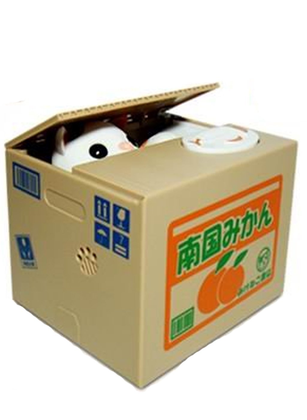 Only need put the coin on the coin-place ,the cat will help you to take it in the box and then help you save it.