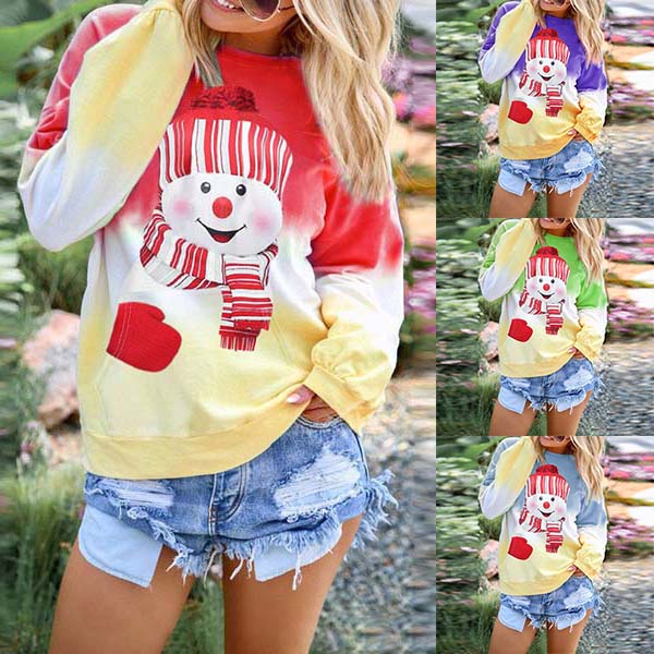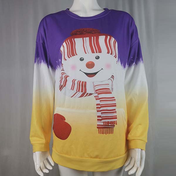 For the coming Christmas Day,you can slip into this sweatshirt to greet it! The cartoon snowman printed pattern design makes this piece look so lively and playful,while the color gradient design will further enhance its charm. When you wear this little piece,you can easily draw more attention!
