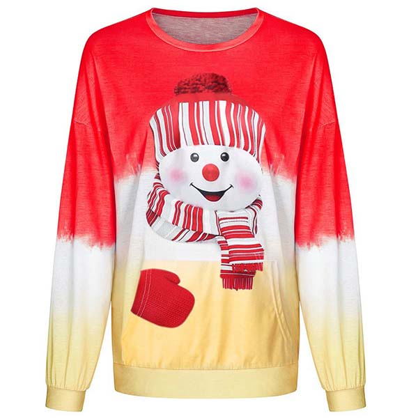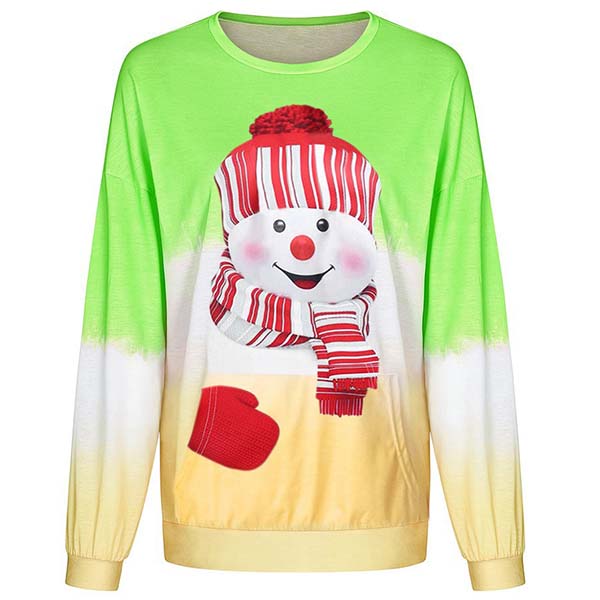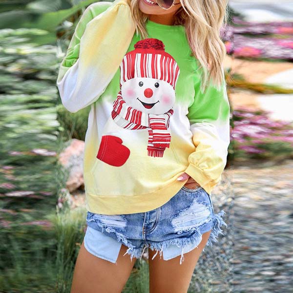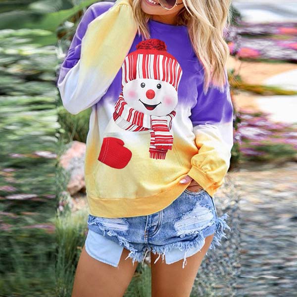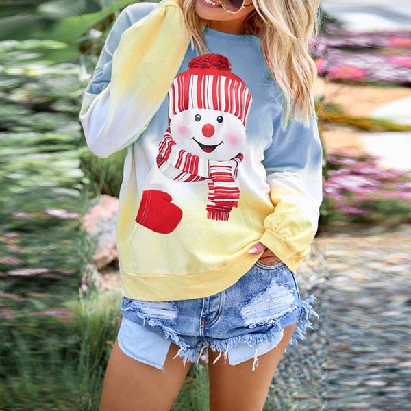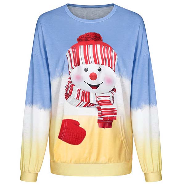 Cute Cartoon Snowman Printed Color Gradient Sweatshirt
