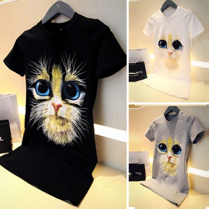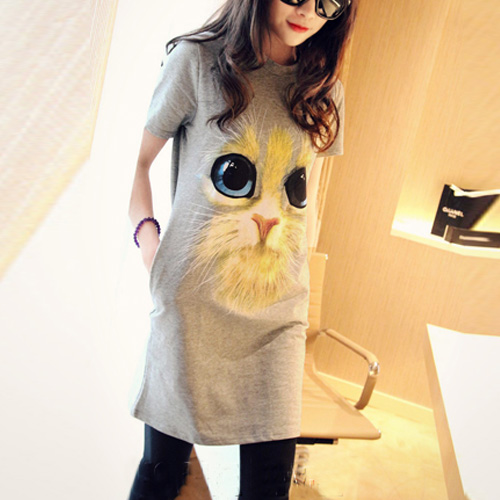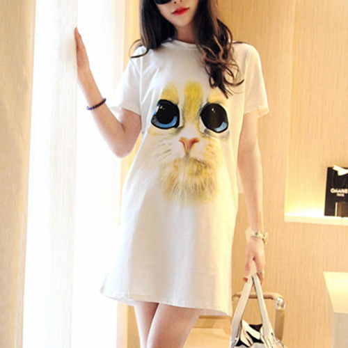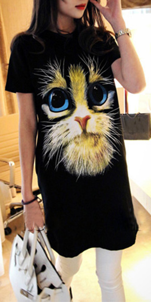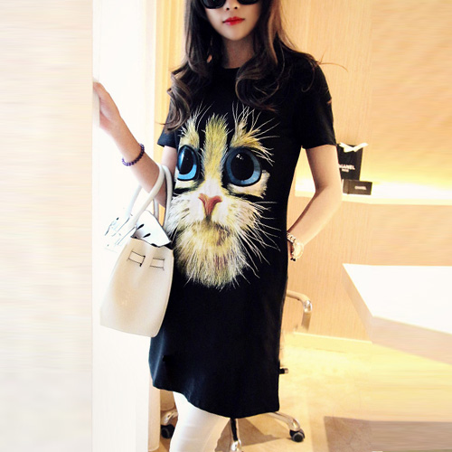 Such a cute and stylish dress! It features cute cat pattern,with short sleeve and