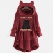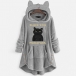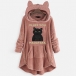 Cute Cat Printed Long Sleeve Irregular Hemline Hooded Plush Sweatshirt