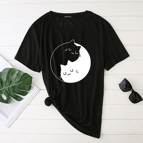 When you go out or have a dating with your lover,you can choose this couple t-shirt to flaunt off your sweet and romantic love. The cat printed pattern design can lend you a dash of lively and playful vibes. Crafted from soft and breathable fabric,with short sleeve and round neck design,this piece is perfect fit for these hot summer days.