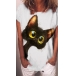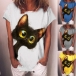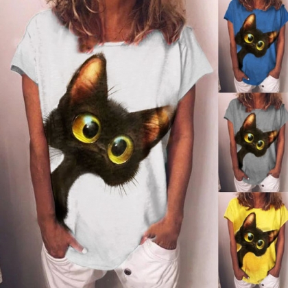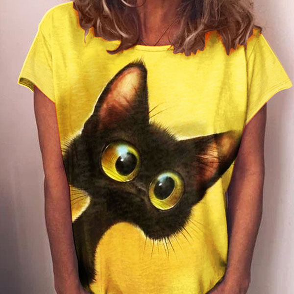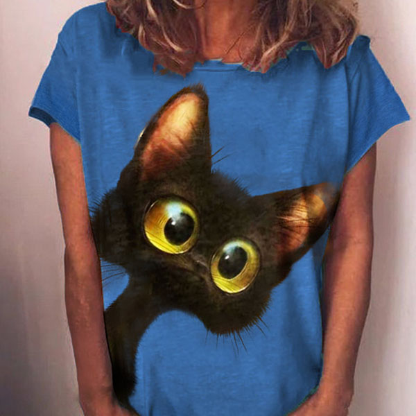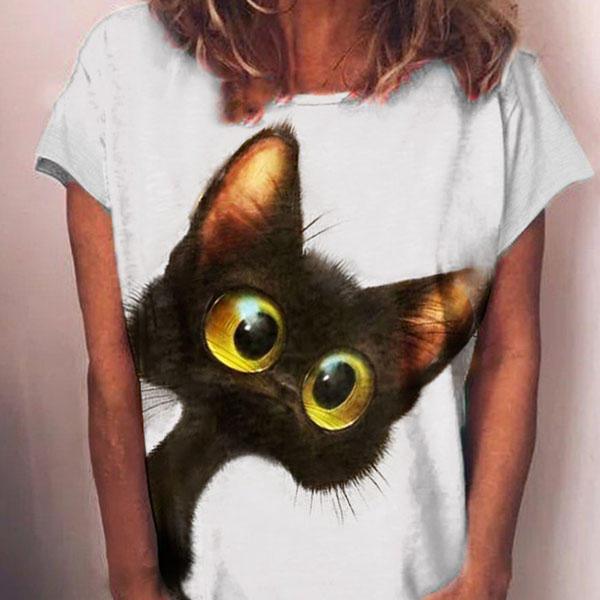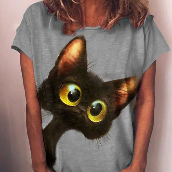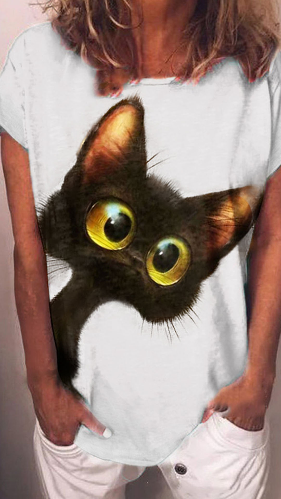 Cute Cat Printed Short Sleeve Round Neck Loose T-shirt