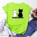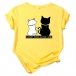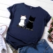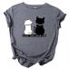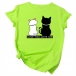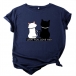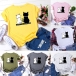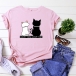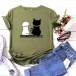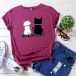 Cute Cat Printed Short Sleeve Round Neck T-shirt