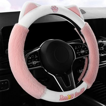 Wanna some cute style decorations for your car? Then make your eyes focused on this steering-wheel cover. The pink tone and cute cat's ear shape design make it look so sweet and lively. Comfortable fabric can give you the comfortable touch feeling.