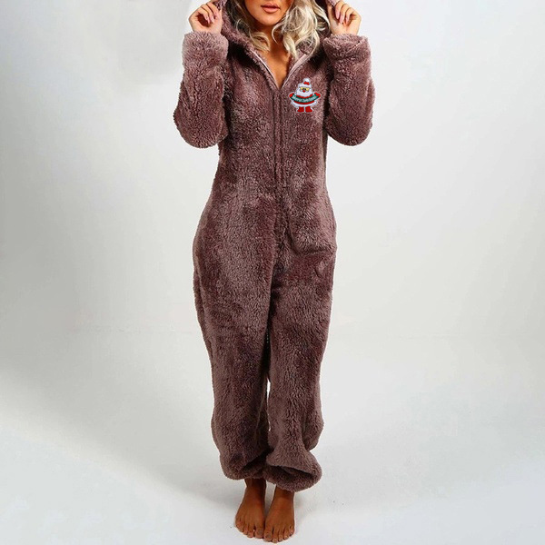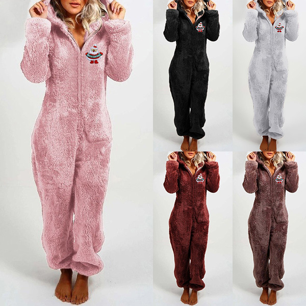 For your Christmas Eve,this One-piece Pajamas can easily strike your mind. Its soft,breathable plush fabric and hooded silhouette design can keep the comfy and warmth. And the Christmas embroidery pattern design will add some festival atmosphere. A good gift for the coming Christmas Day!