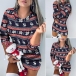 When invited to a Christmas party,you can just slip into this dress to win more eyes. The elk and snowflake printed pattern design make this piece look so stylish and playful,while the fit silhouette design can showcase your slender figure. So why not buy one for the coming Christmas Day?