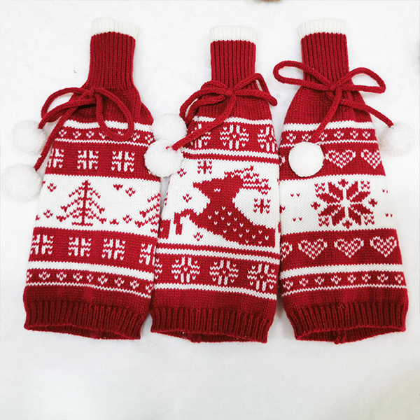 Cute Christmas Theme Hairball Spliced Knit Wine Bottle Cover Bag-3 Piece/Set