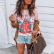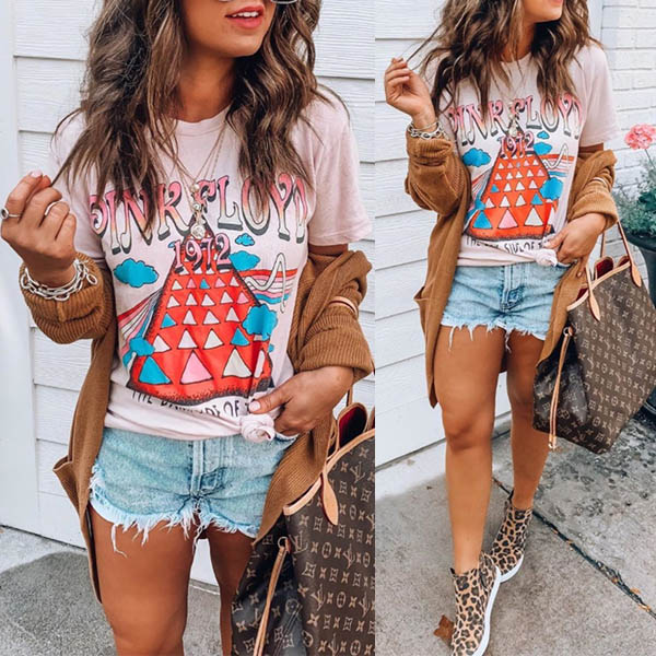 Thanks to the colorful printed details,this t-shirt can easily win more eyes. Crafted from soft and breathable fabric,with short sleeve and round neck design,this t-shirt not only can give you a comfortable day,but also can offer you different matching styles.