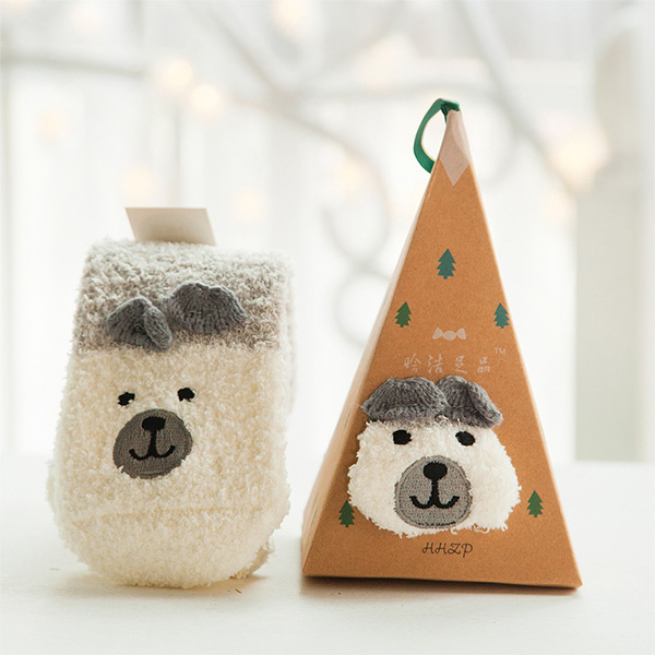 Cute Contrast Color Cartoon Pattern Coral Fleece Floor Socks