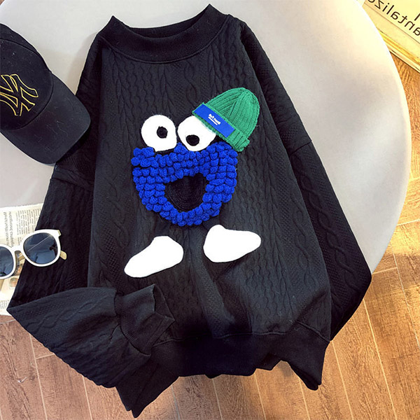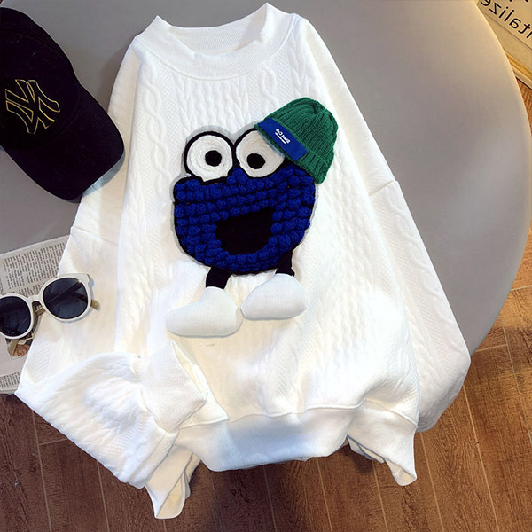 Wanna add some cute and playful vibes to your wardrobe? Then make your eyes focused on this sweatshirt. The contrast color cartoon pattern design at the front side makes this piece look so lively and attractive. Crafted from soft and breathable fabric,with long sleeve,round neck and a loose silhouette,this piece also can give you a comfortable day.