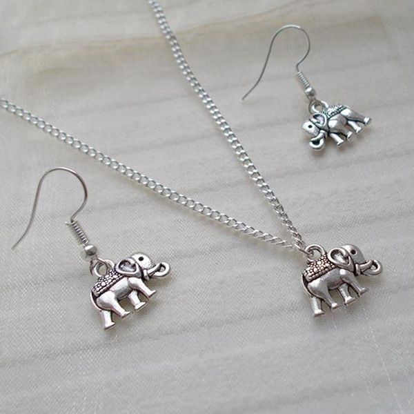 Cute Elephant Pendant Earrings + Necklace Two-piece Set
