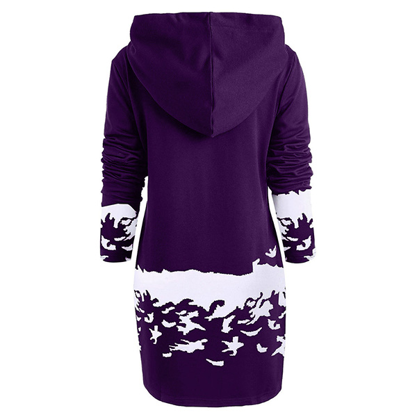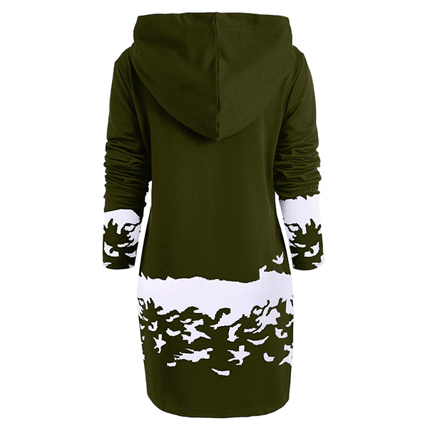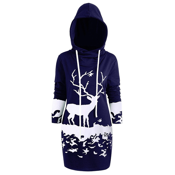 Cute Elk Printed Long Sleeve Hooded Sweatshirt Dress