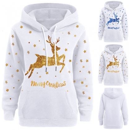 Cute Elk Printed Long Sleeve Hooded Sweatshirt