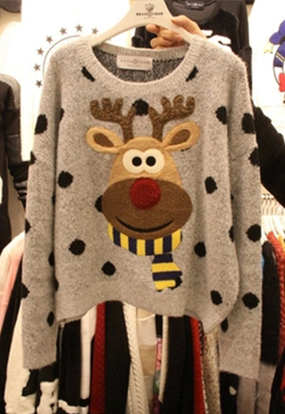 If cute is your style,then this sweater must be your favourite style. It features a embroidery elk pattern,with dots,cute and chic. Long sleeve and round neck design. You can pair it with your jeans,dots skirts or shorts.