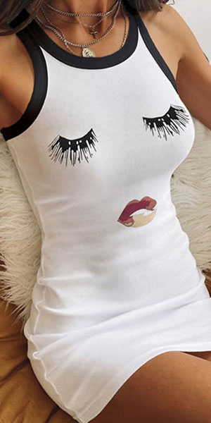 Not only can showcase your slender figure,but also can offer you a stylish yet playful style,that's why we suggest you this dress. The eyelash printed pattern design makes this piece look so lively. For these hot summer days,this tank dress is a good choice.