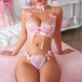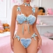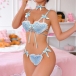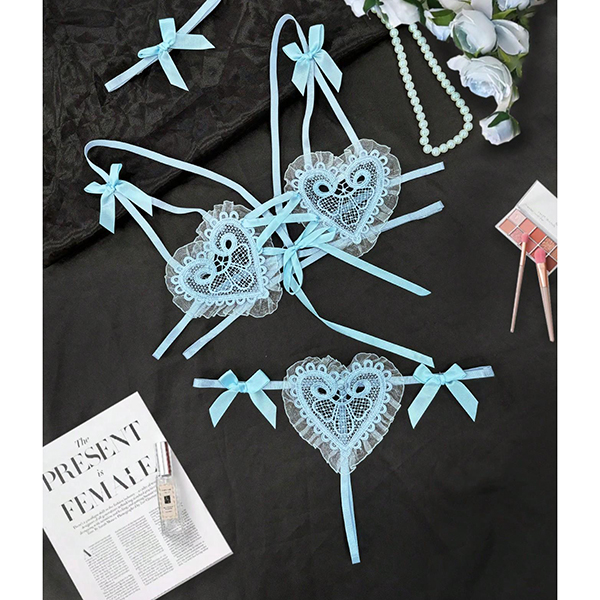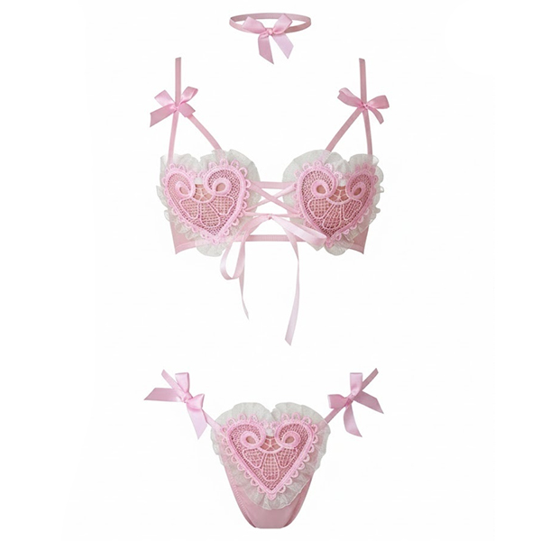 Cute Heart Shape Bowknot Lace-up Two-piece Lingerie Set