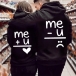 Show off your love with this adorable "Me & U" printed hooded shirt for couples.