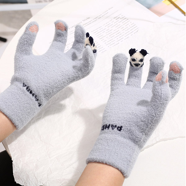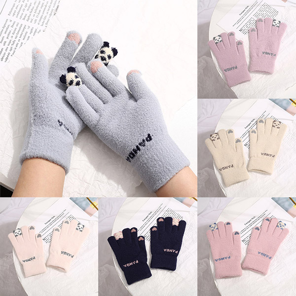Cute Panda Pattern Warm Knit Touch Screen Telefingers Gloves