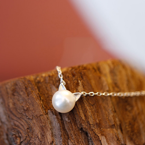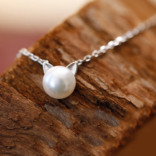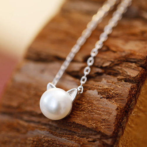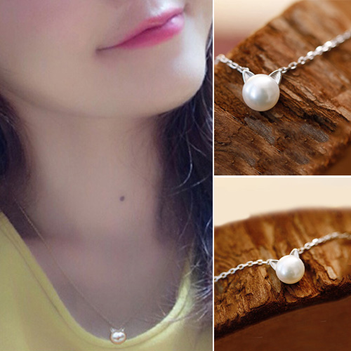 Cute Pearl Cat Ears Shaped Short Pendant Necklace