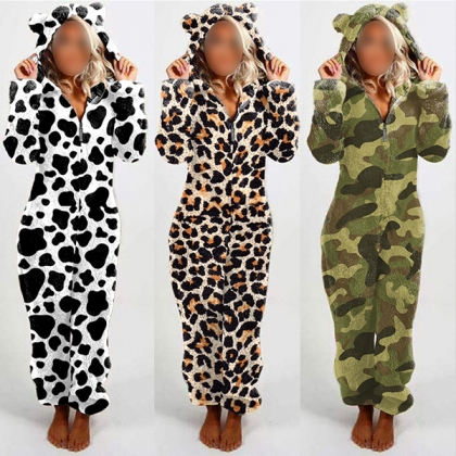 For your home time with your families,this parent-child Pajamas would ensure you a happy time. The cute printed pattern design can add some lively and playful vibes. Crafted from soft and breathable fabric,with long sleeve and hooded silhouette,this one-piece pajama can ensure an utmost comfort. And the front-zipper design makes it easier to wear and off. A perfect gift for your friends.