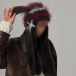 Cute Rabbit Ear Striped Plush Hat for Women – Cute Knit Beanie with Ear Flaps for Fall/Winter