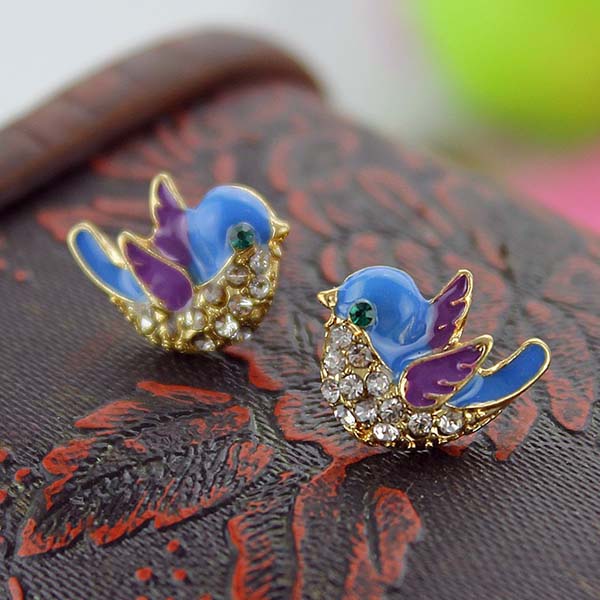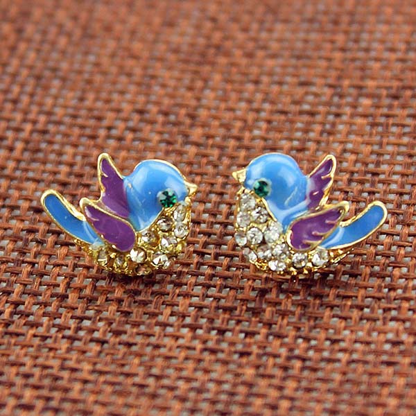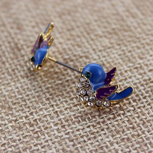 Wow,such a pair of cute and vivid stud earrings. Bird shaped design,inlaid with rhinestone details,shinning,sparkle and lively. It is a cool way to embellish your ears and enrich your overall dress up.