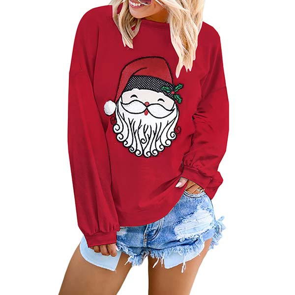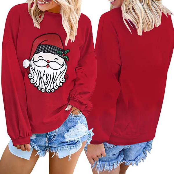 Thanks to the Santa Claus printed pattern design,you can exudes your cute and playful flavor in this sweatshirt. On the other hand,its soft and breathable fabric will give you a comfortable day. And the red tone design will add some happy atmosphere. Perfect fit for the coming Christmas Day!