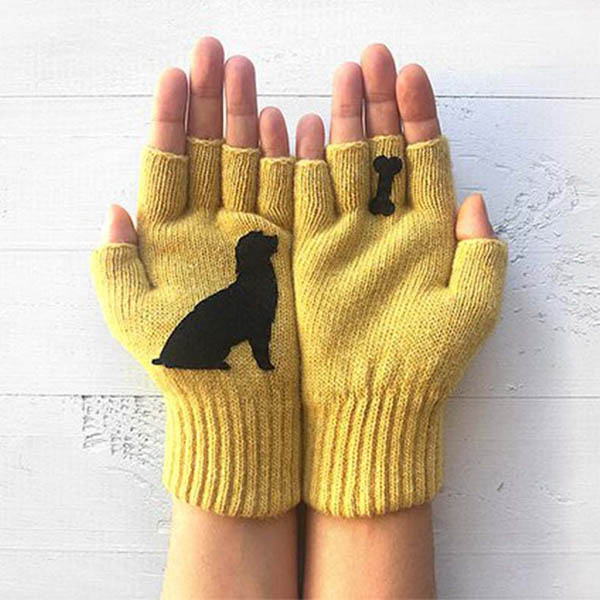 Cute Style Cartoon Puppy Pattern Knit Gloves