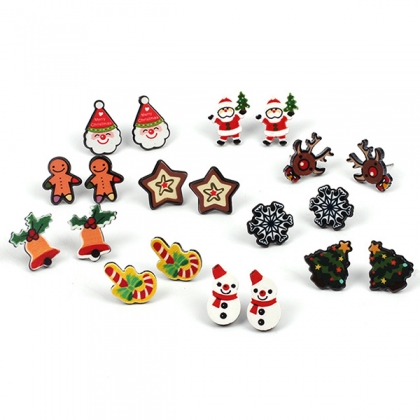 pairs of different stud earrings,such as star shaped,elk shaped,Christmas tree shaped,snowman shaped and so on.