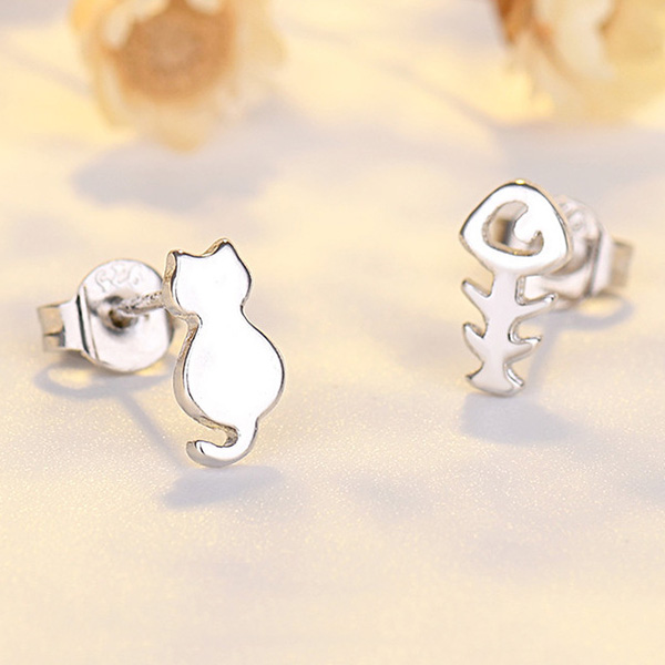 Finish a more playful and lively daily look by adding this pair of asymmetric stud earrings. The cat and fish-bone shaped design make it full of style and personality. So why not embellish your ears with these pieces?