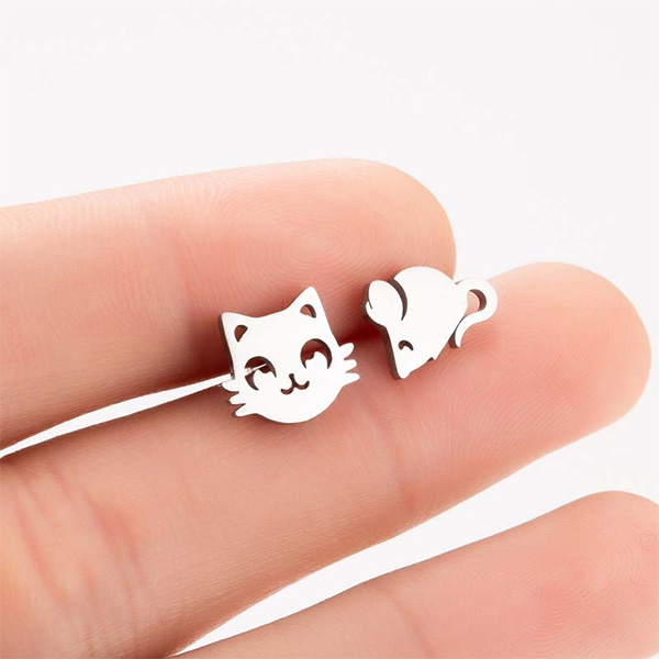 Cute Style Cat Mouse Shaped Asymmetric Stud Earrings