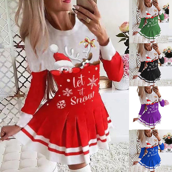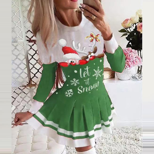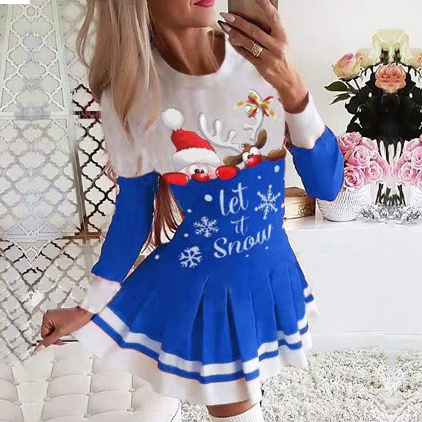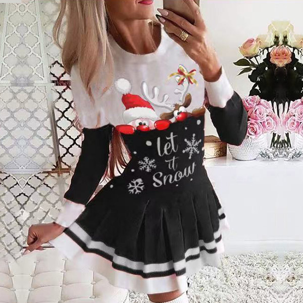 Still worrying about what to wear for the coming Christmas Day? Then look no further than this piece. The Christmas printed pattern design will add the festival atmosphere. Finished with long sleeve,round neck and pleated hem,this dress will offer you a happy and wonderful Christmas time!