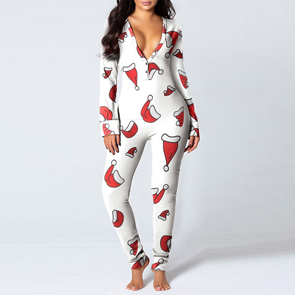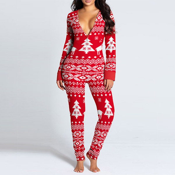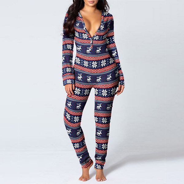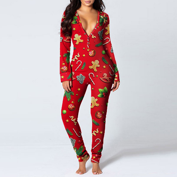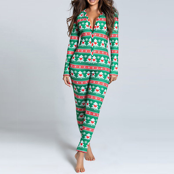 On your Christmas night,this home-wear pajamas would be your perfect choice. The Christmas printed pattern design makes it more matching with the festival atmosphere,and the button design at the hips part makes it more convenient for you to go to the toilet. Thanks to the soft and breathable fabric,you can also have an utmost comfort in this piece.