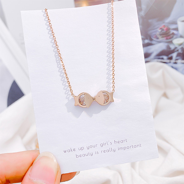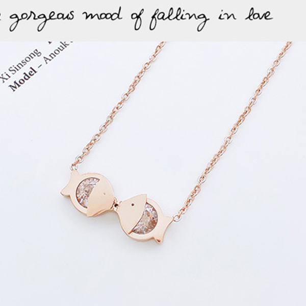 This necklace comes with a classic yet stylish gold tone,decorated with the kiss fish pendant,which makes it look so playful and lively. When you wanna enrich your overall dress up,you can just consider adding this necklace.