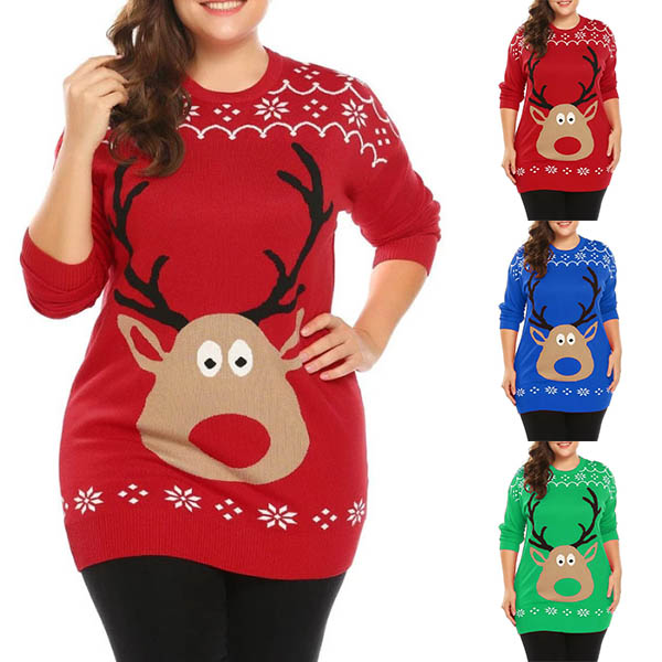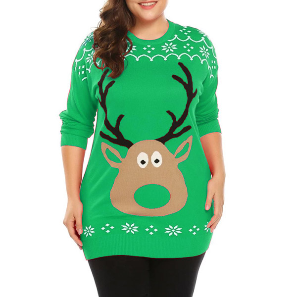 Cute Style Long Sleeve Round Neck Elk Pattern Sweater