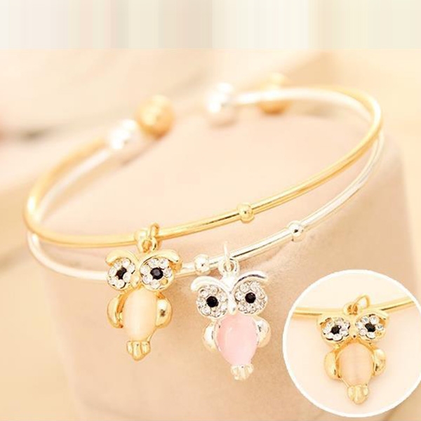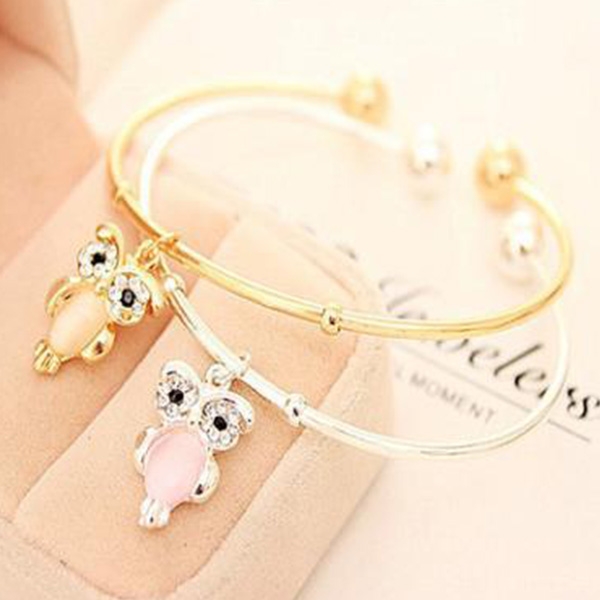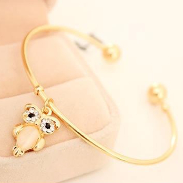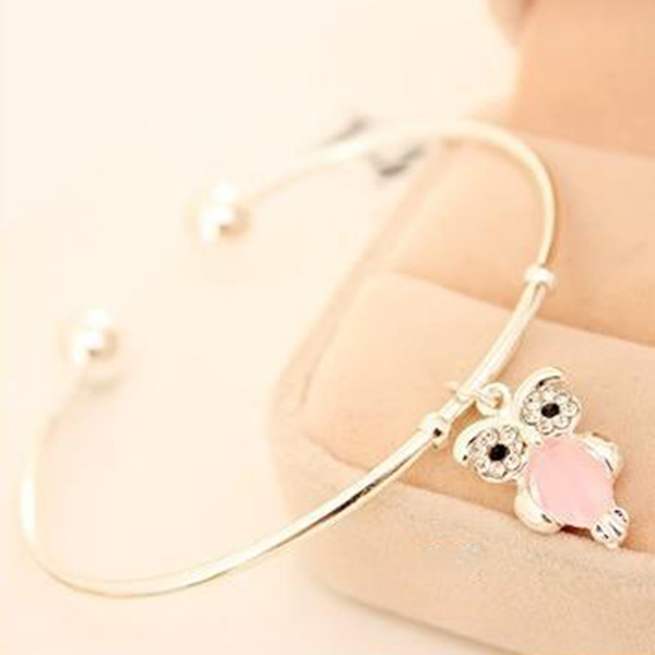 Cute Style Rhinestone Inlaid Owl Pendant Bracelet