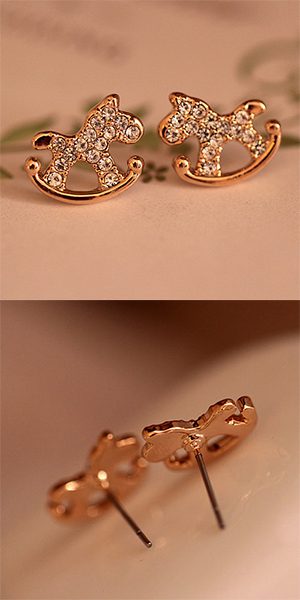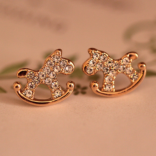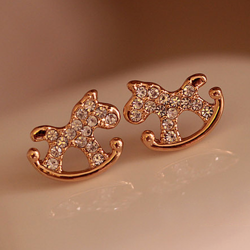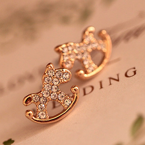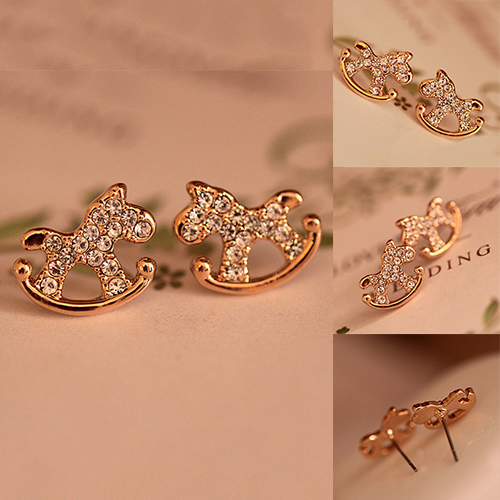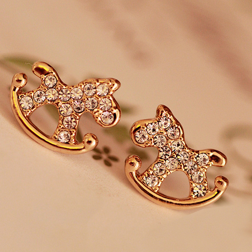 Cute Style Rhinestone Wooden Horse Stud Earrings