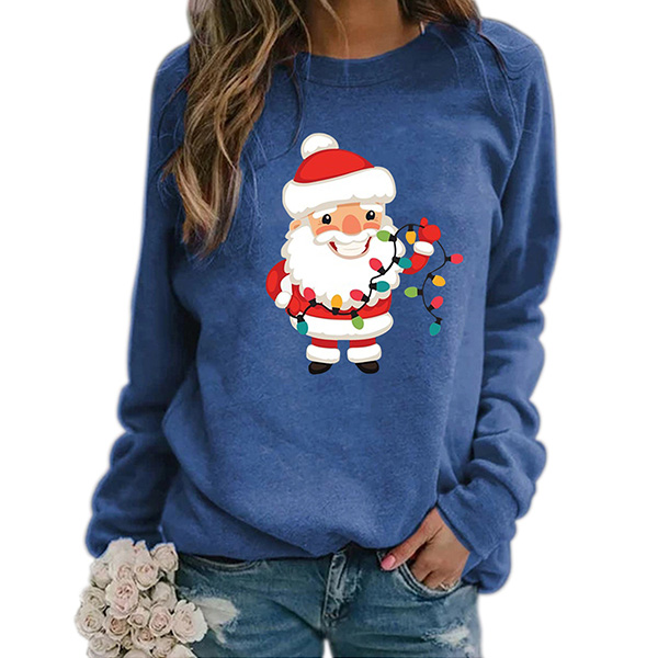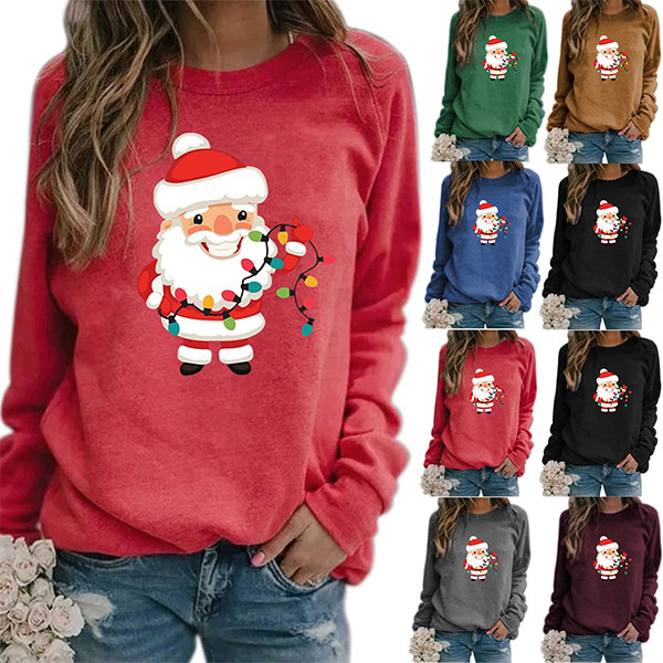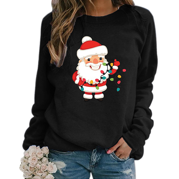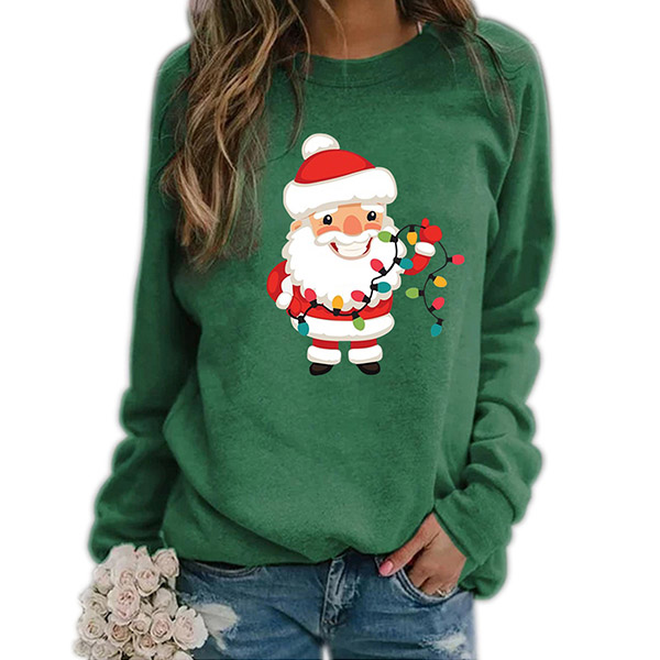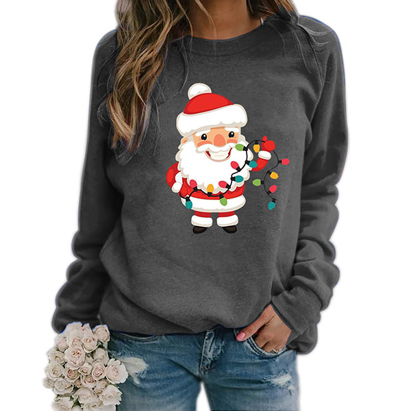 Greet the Christmas Day with this sweatshirt! The Santa Claus printed pattern design not only make you look lively and playful,but also makes it more matching with the festival atmosphere. Another design highlight is that it can be matched with different style bottoms like shorts,skirts and jeans.