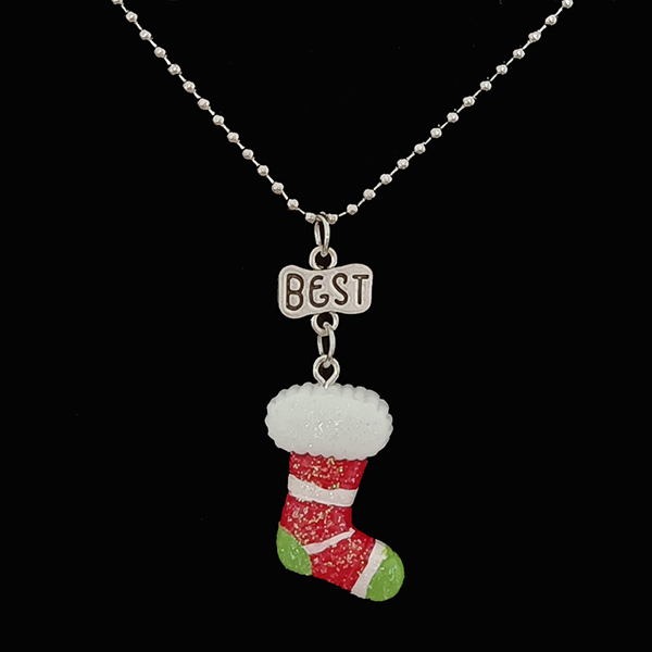 When you are looking for a proper gift for your friends,then you can make your eyes focused on this necklace. It is decorated with the Santa Claus/Christmas Sock pendant,which makes it look so lively and playful.