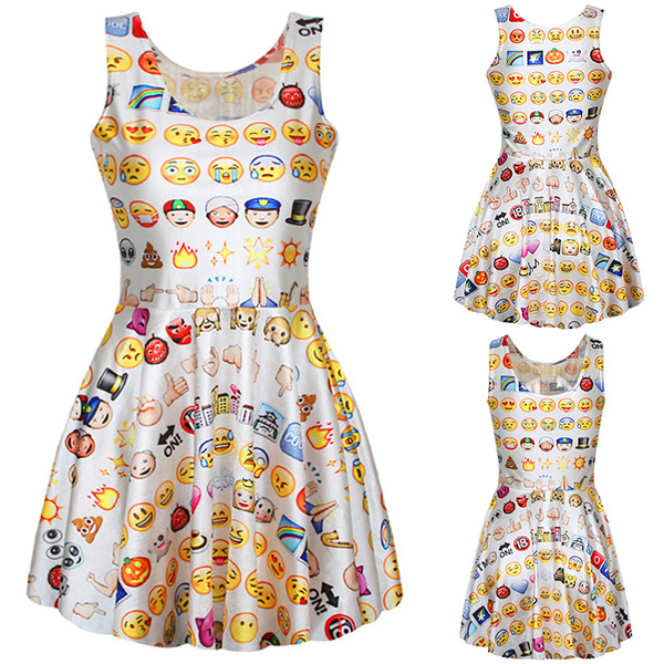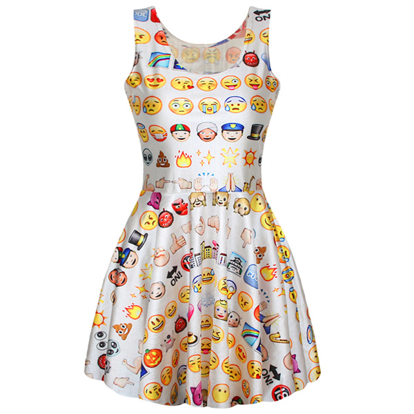 Start your wonderful day from this dress! Its emoji printed lends you a cute and playful style,while its simple and classic design