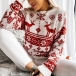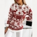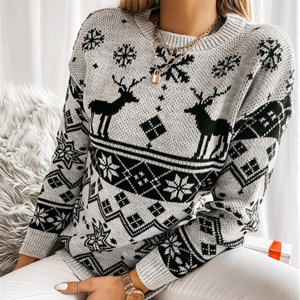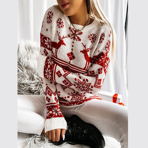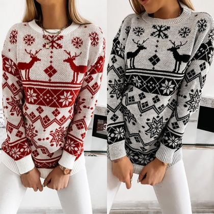 Cute Style Snowflake Elk Pattern Long Sleeve Round Neck Knit Sweater