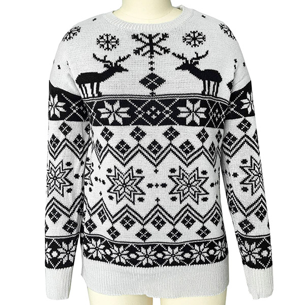 This sweater is designed with elk and snowflake pattern,which make it more matching with the Christmas Day. Finished with long sleeve,round neck and crafted from soft knitted fabric,this sweater not only can keep you warm and comfy,but also can offer you different fashion styles by teaming with different style bottoms.