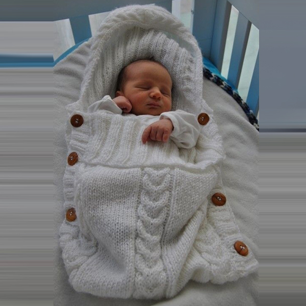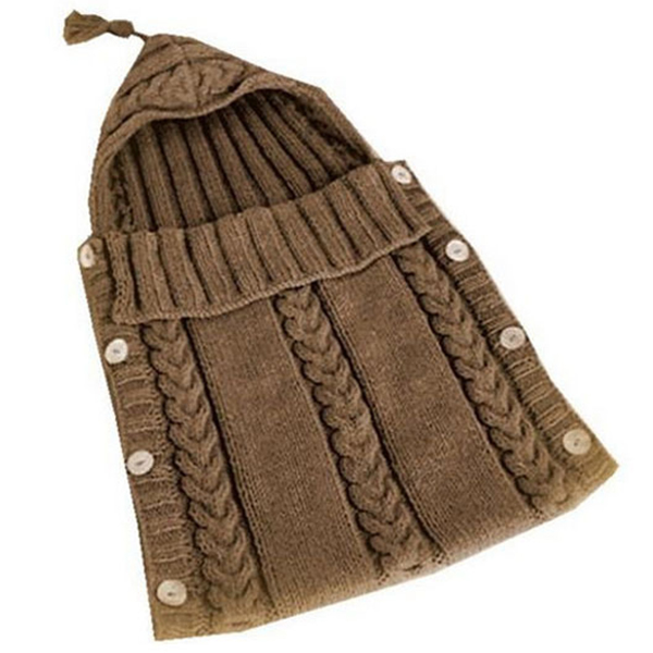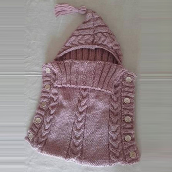 Cute Style Solid Color Hooded Knit Sleeping Bag for Babies