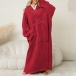 Cute Warm Apple Pattern Kangroo Pockets Hooded Long Sleeve Faux Lamb Wool Plush TV Blanket Wearable Blanket