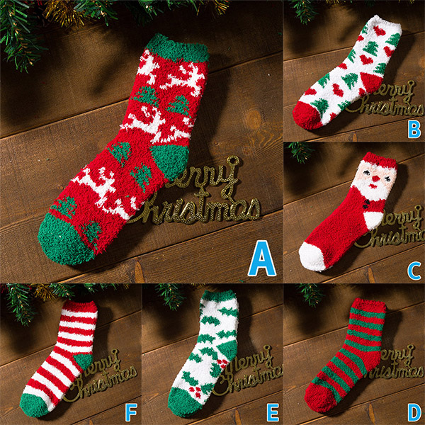 Cute Warm Contrast Color Printed Plush Socks for Christmas-2 Pairs/Set