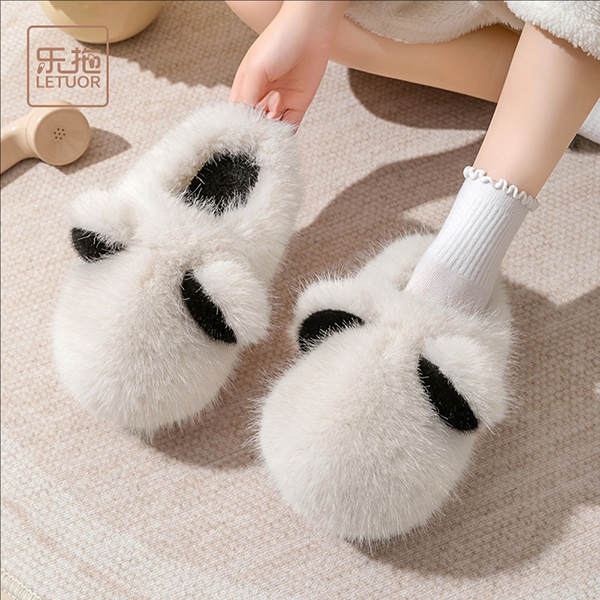 Cute Warm Plush Contrast Color Cartoon Slipper